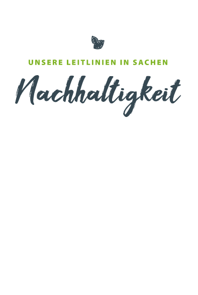 Wir lieben es, Mensch und Natur wertzuschätzen. Deshalb gehen wir verantwortungsvoll mit den Ressourcen um! Wir orientieren uns an den Leitlinien aus den Bereichen Ökologie, Ökonomie und Soziales und überprüfen in Kooperation mit unseren Partnern regelmäßig die Betriebe und Prozesse, um nachhaltige Lösungen zu etablieren.